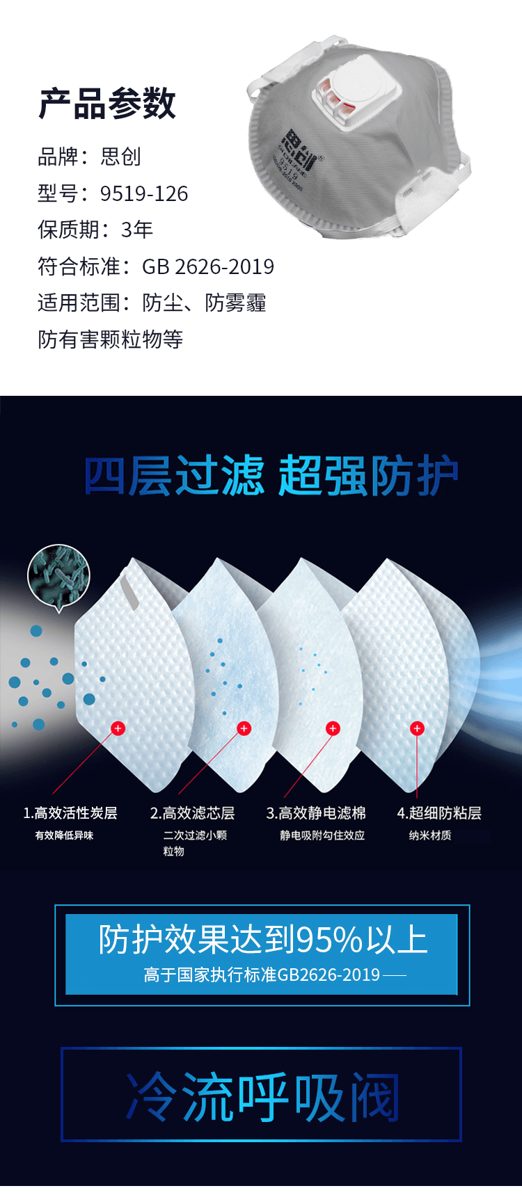 9519防異味帶閥頭戴式防護口罩